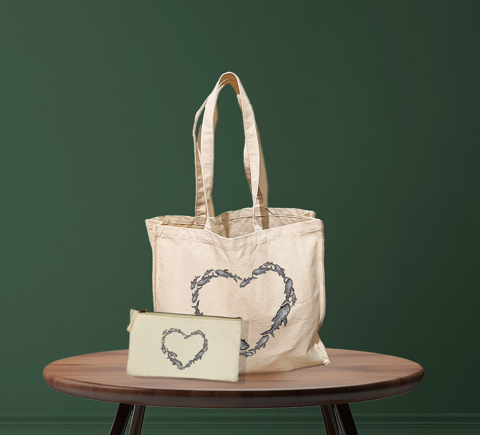 Whale Shark Heart Tote Bag and Pencil Case Bundle