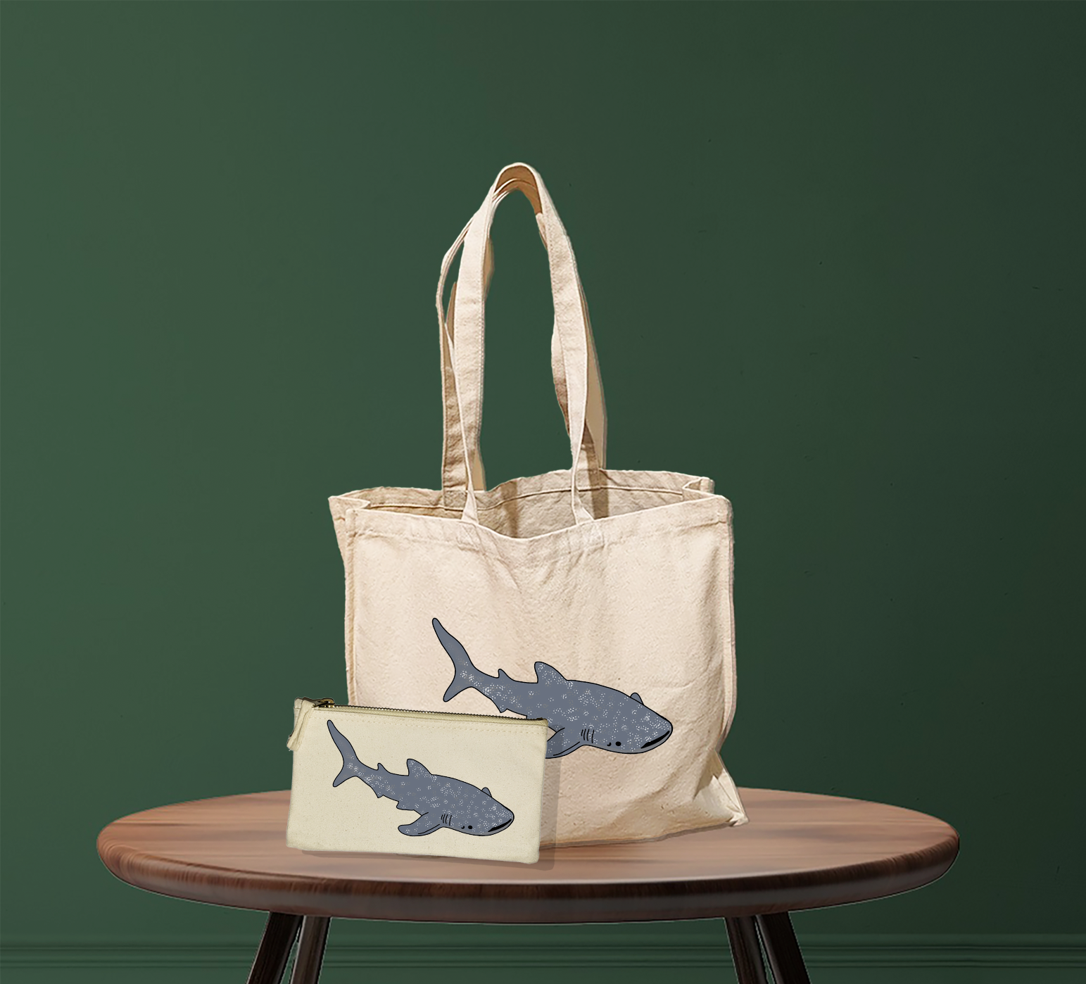 Introducing our new bundle including a whale shark large tote bag and pencil case, a must-have accessory for those with a love for marine life. This spacious tote features a stunning design showcasing the majestic beauty of the whale shark, the largest fish in the ocean. Crafted with durable materials, this bag is perfect for carrying your essentials wherever you go. With its ample storage space, you can easily fit in your beach essentials, groceries, or even use it for your daily commute. The pencil case perfect for carrying all your stationary and keeping your bag organised. Show off your passion for these gentle giants with our eye-catching whale shark large tote bag and pencil case.